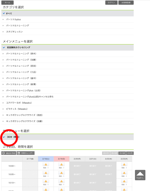 ②カテゴリーを選択で【30分無料カウンセリング】選択してください