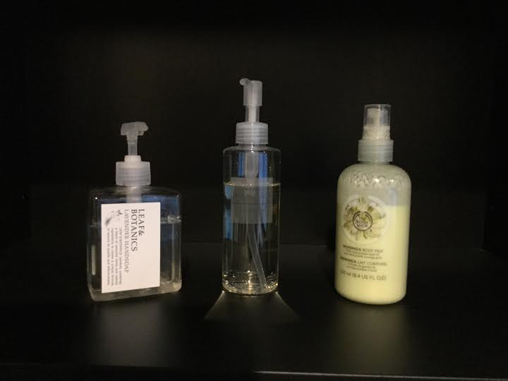 更衣室には、メイク落とし・ボディローション・綿棒・コットン・歯ブラシ・マウスウォッシュなどのご用意があります。