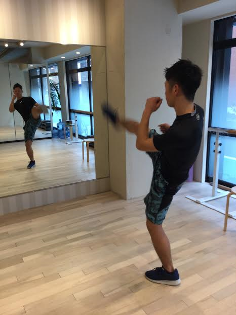 リズムに合わせて足を動かし、パンチやキックの動作を行っていきます。