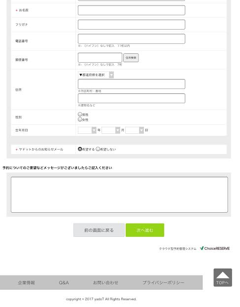 最終の予約画面の下に、【予約についてのご要望などメッセージがございましたらご記入ください】の欄に